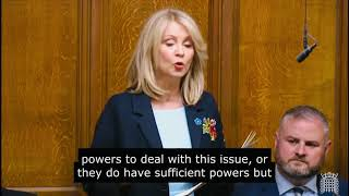 Esther McVey MP asks about the new powers available to police to move travellers on following consistent problems at Parkgate Industrial Estate 18th May 2023 Esther McVey has asked government to step in and explain to Cheshire Police what powers it has to move on travellers currently blighting Knutsford. The Tatton... Speeches in Parliament
